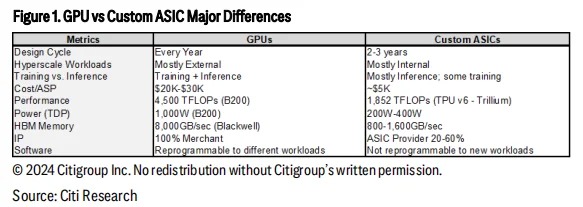 花旗还表示,尽管 ASIC 单位组合的份额可能在 2028 年达到 35%以上,但由于 AI GPU 更高的平均售价(ASP),ASIC 的销售份额可能被限制在约 25%。