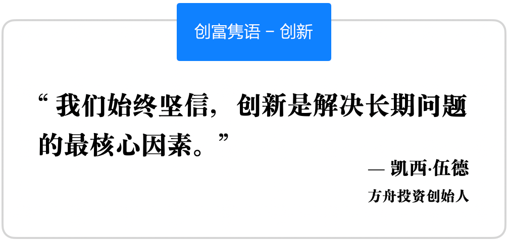Cathie Wood 的投资哲学融合了深度的行业研究和长期的市场视角。她对于趋势的精准预测和对于科技进步的深刻理解使 Ark Invest 能够在波动的市场中获得显著的优势。Cathie Wood 的成功不仅表现在短期的业绩上,她更重视长期的增长和价值创造,坚信科技创新将是推动未来经济增长的主要动力。因此,她的投资策略往往集中于那些能够引领未来变革的企业,这也为她赢得了“未来洞察家”的美誉。通过这种策略,Cathie Wood 和她的团队已经成功地识别并投资了多个行业的领先企业,为投资者创造了丰厚的回报。