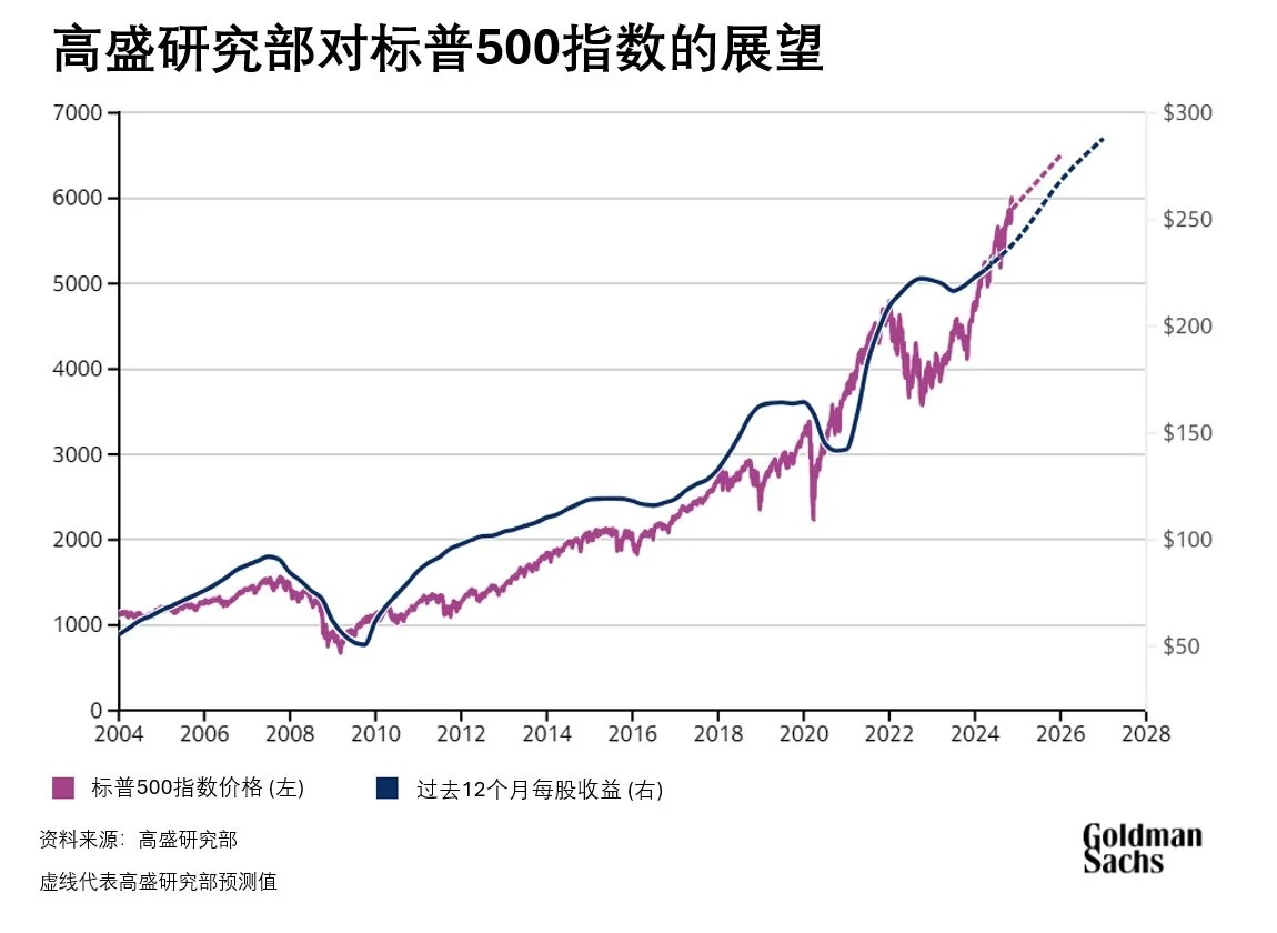 高盛 2025 美国股市展望:预计标普 500 指数 25 年回报率将达到 10%